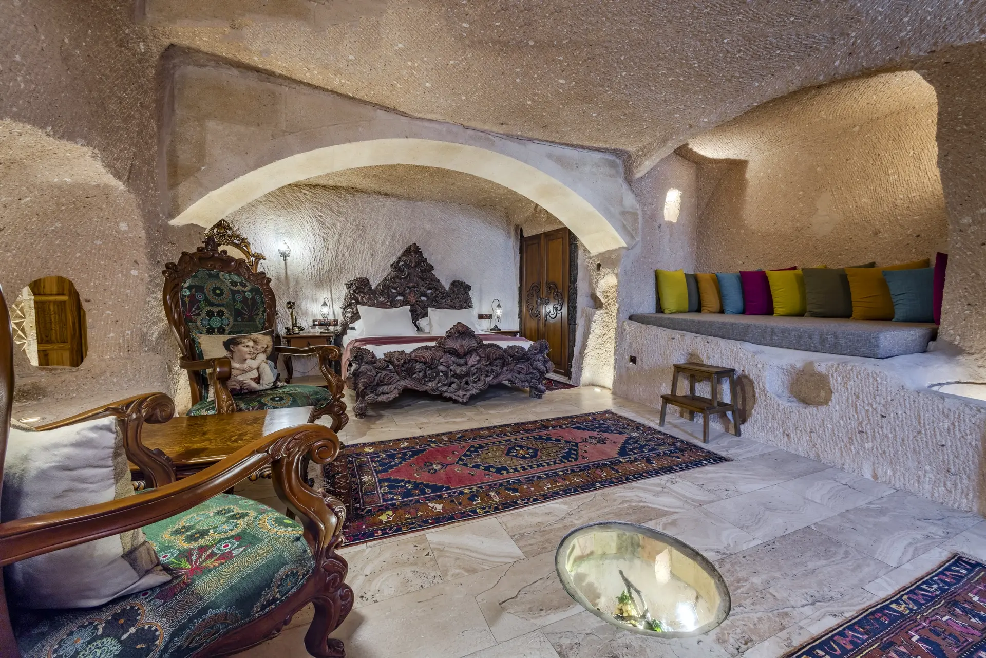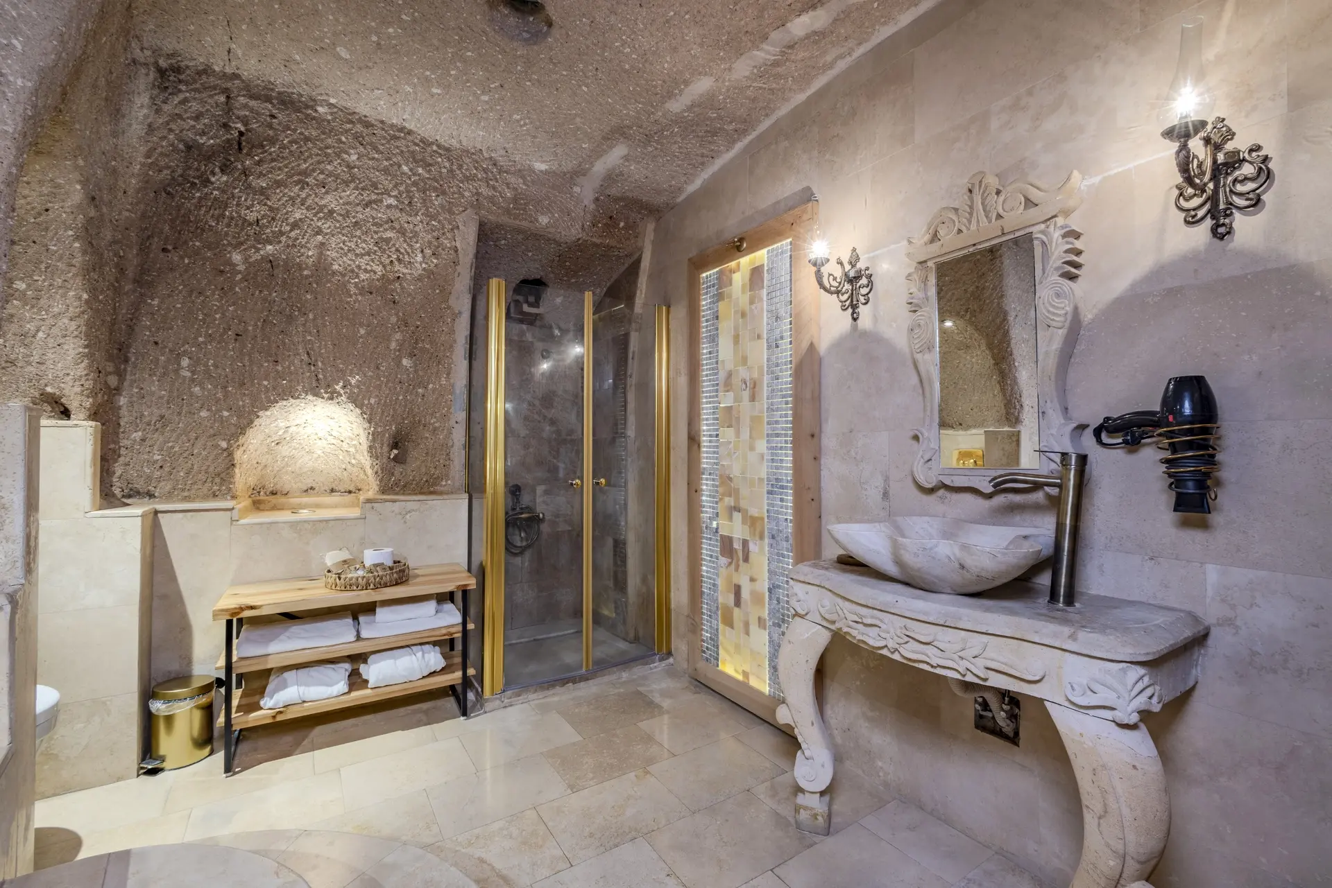 Этот просторный люкс, где вы можете прикоснуться к самой глубокой истории Каппадокии, очаровывает гостей своей 200-летней печью-тандыром, винными погребами и 166-летней кроватью ручной работы из палисандра. Ванная комната с каменной ванной ручной работы размером с детский бассейн сочетает в себе историческую атмосферу с современным комфортом.