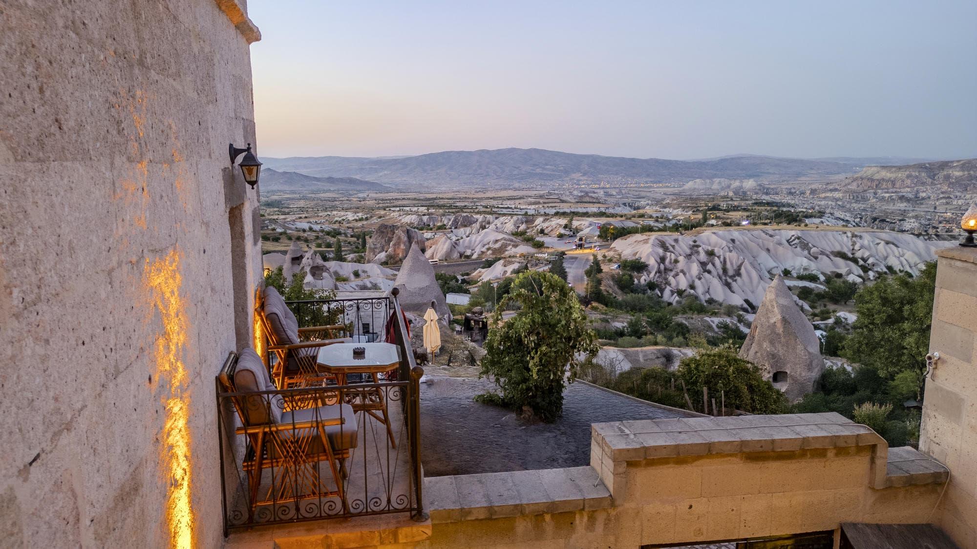 Трехсторонний панорамный вид, турецкая баня и частный балкон, с которого можно наблюдать за Каппадокией.