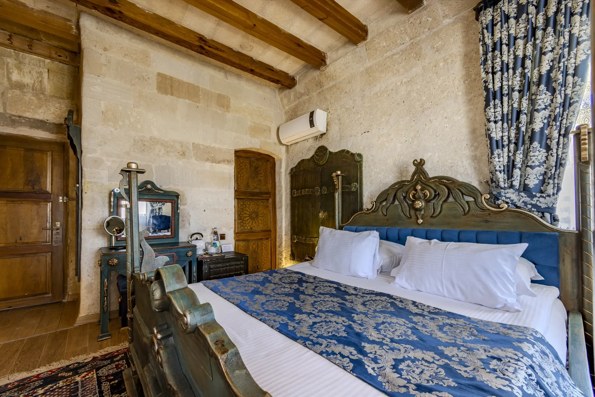В рамках уникальной каменной архитектуры отеля Eyes of Cappadocia наш люкс «Делюкс» площадью 28 м² отражает элегантность и величие османского периода, предлагая гостям исторический опыт роскоши. Специально разработанный для двух взрослых, этот номер мастерски сочетает традиционные мотивы с современными удобствами. Это особенное пространство, где вы почувствуете себя как во дворцовой атмосфере, ждет вас с каждой деталью, чтобы сделать вашу поездку в Каппадокию незабываемой.