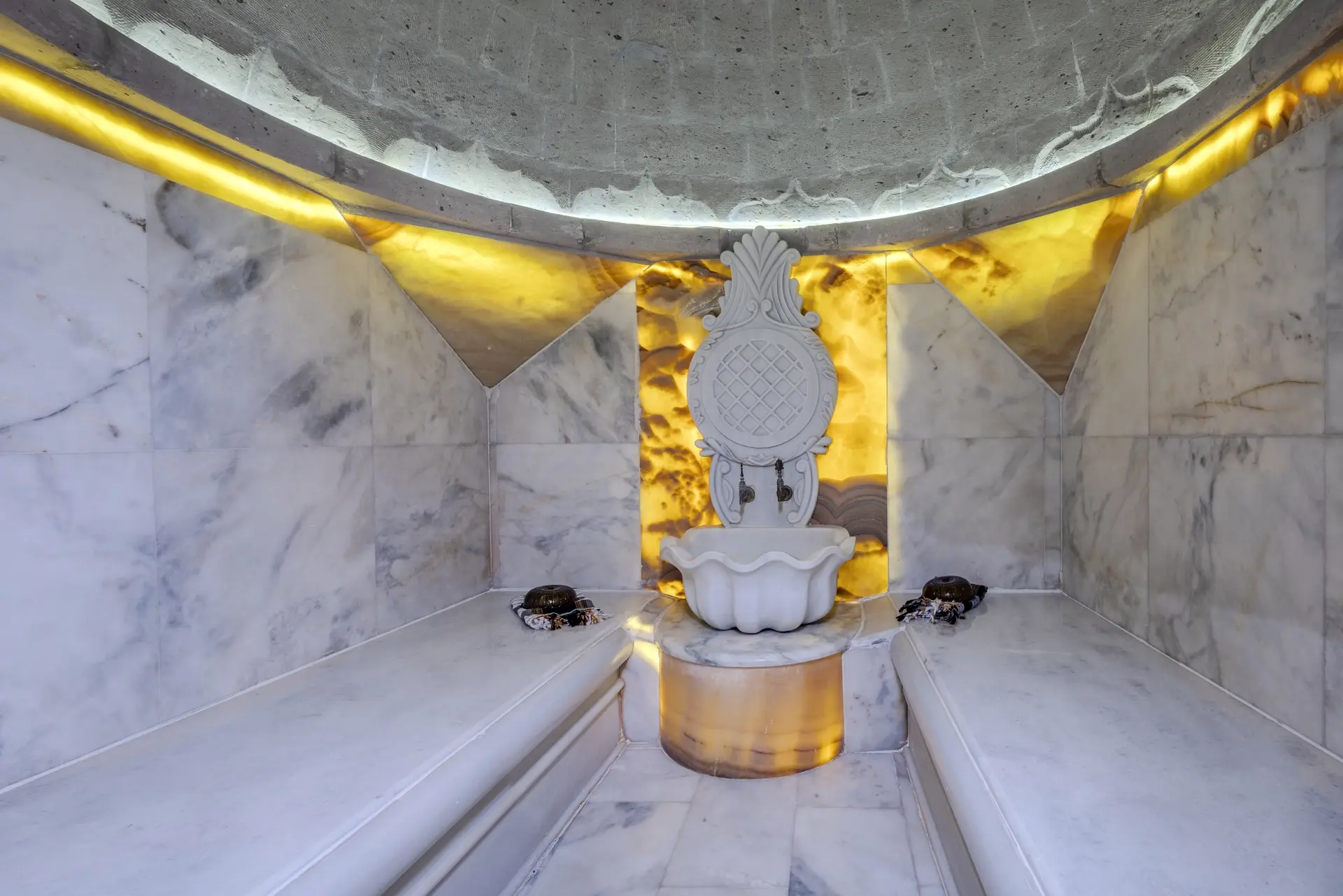 Самая отличительная черта этого номера — традиционная турецкая баня (хаммам), которая предлагает вам частный ритуал очищения и расслабления. После наслаждения хаммамом вы можете расслабиться перед камином, который дополняет теплую атмосферу номера, и снять приятную усталость дня. Оснащенный современными удобствами, такими как кондиционер, мини-бар и интернет, люкс «Османский Делюкс» с турецкой баней — идеальный выбор для тех, кто желает испытать комфорт и традиции вместе.