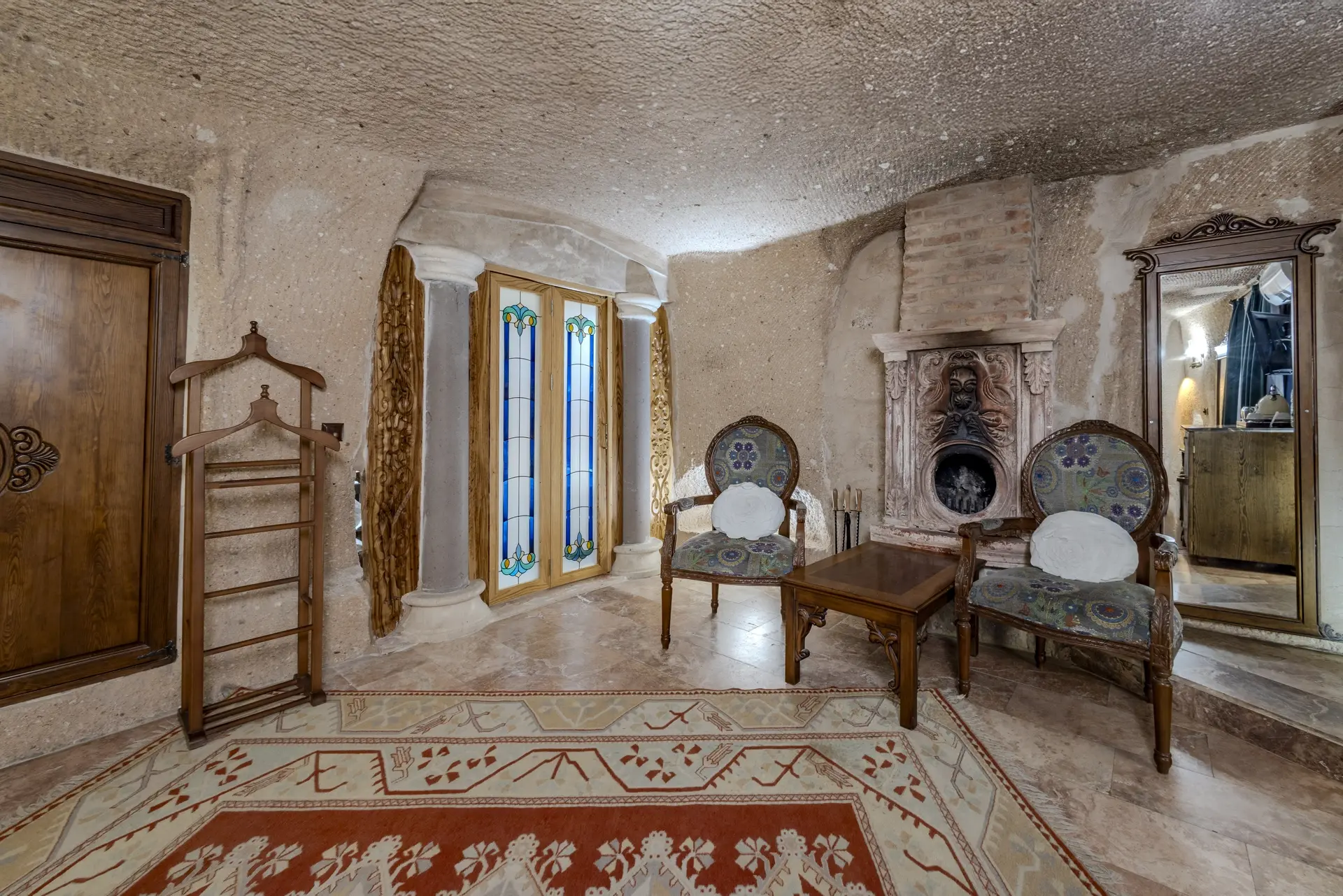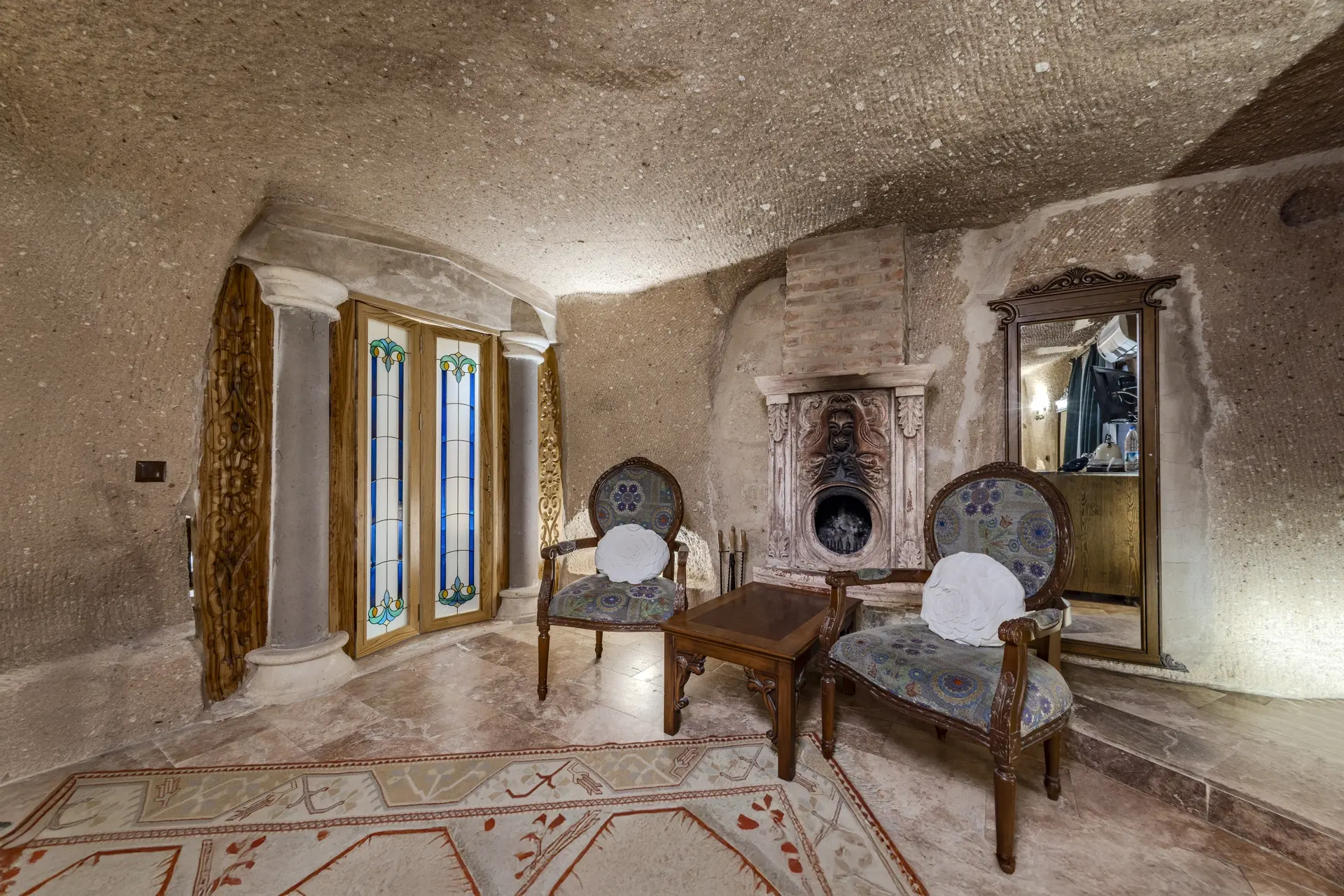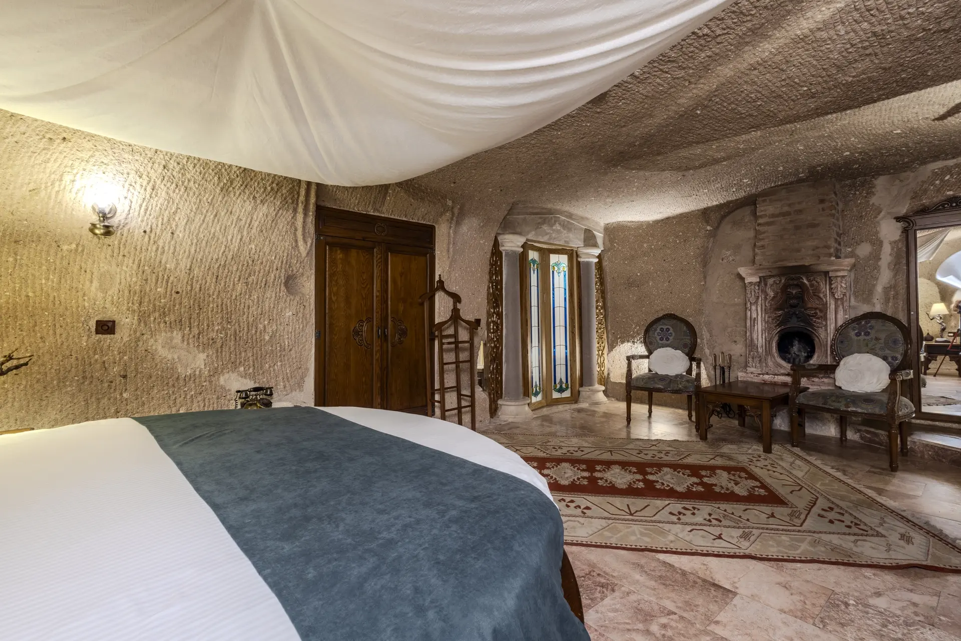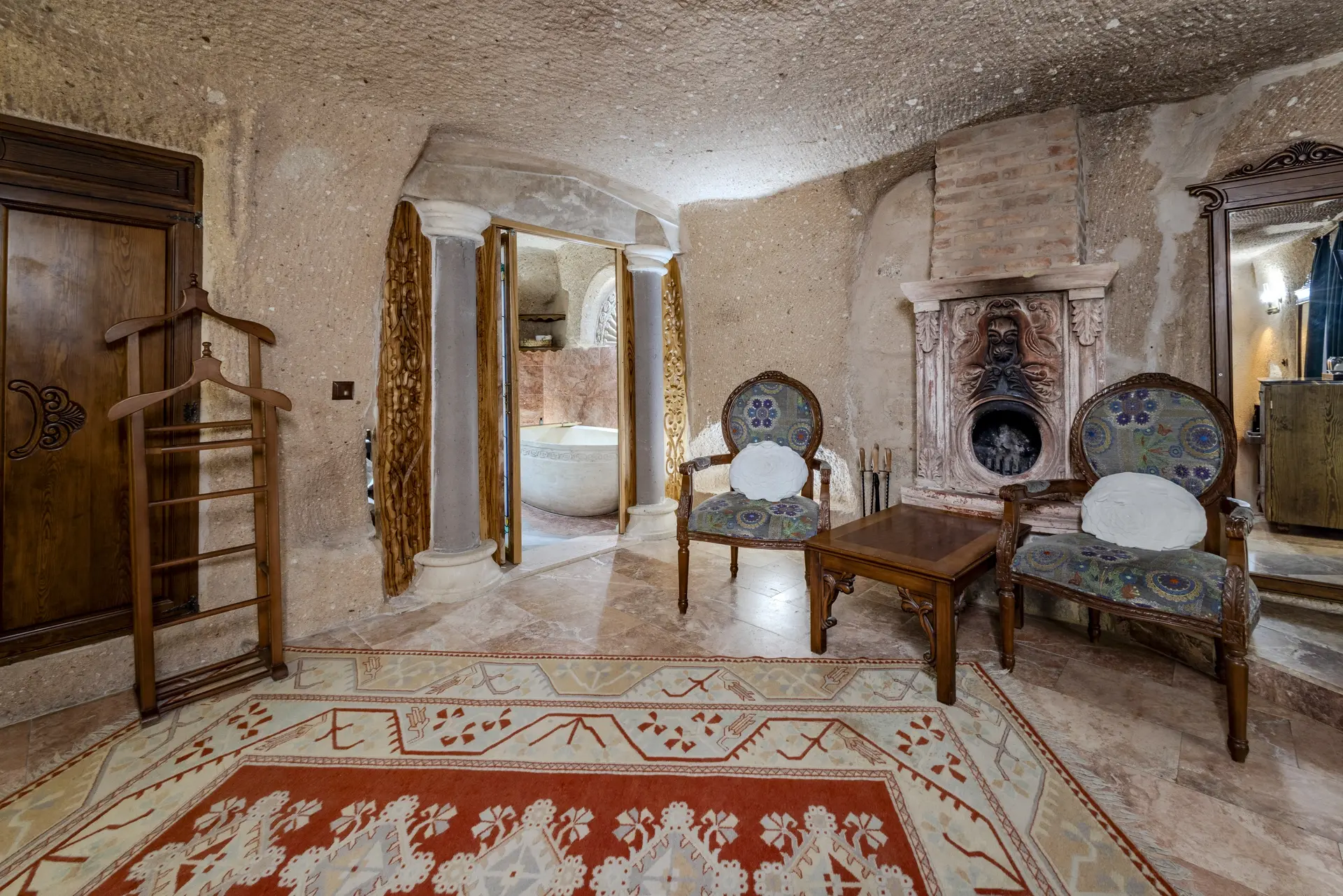 В конце дня вы можете насладиться приятной беседой в тепле камина или побаловать себя, расслабляясь в вашей дизайнерской ванне. С его просторной гостиной, современными удобствами, созданными для вашего комфорта, такими как кондиционер, мини-бар и интернет, и его сказочной атмосферой, пещерный номер «Шехерезада» — идеальный выбор для наших гостей, желающих создать незабываемые воспоминания в Каппадокии.