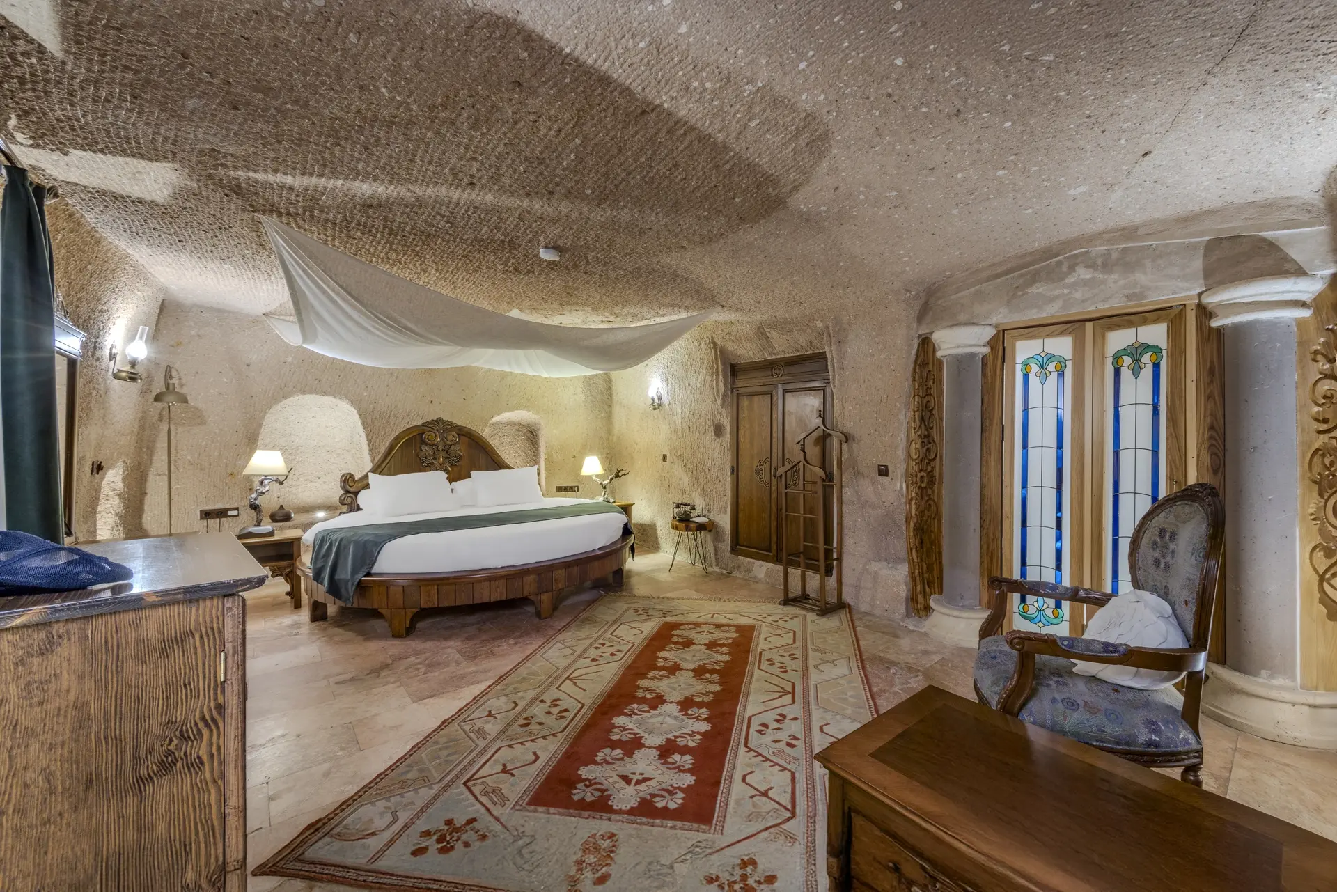 Этот люкс, который кажется вышедшим из легенды, создает чарующую атмосферу благодаря кровати ручной резьбы и витражам в османском стиле. Цельная мраморная римская ванна в ванной комнате отправляет гостей в путешествие по истории.
